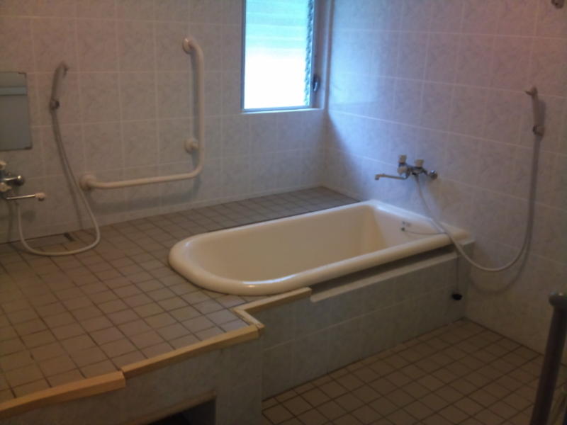 | 一般利用者のバスルームと別に車椅子専用のバスルーム完備しています。(写真はA棟です) | 一般利用者のバスルームと別に車椅子専用のバスルーム完備しています。(写真はA棟です) | 一般利用者のバスルームと別に車椅子専用のバスルーム完備しています。(写真はB棟です) |